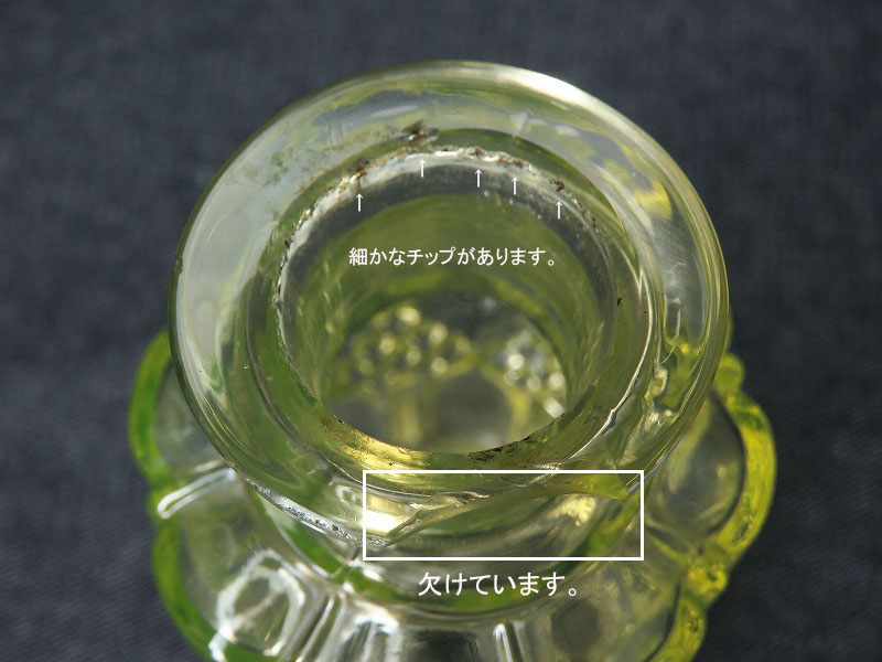 *アンティークのガラス製品には、製作工程で出来た気泡や色ムラ・小さな黒点などが見られます。また長年の使用による細かなキズやチップ等があります。目立った大きなキズ等は画像で紹介させていただきますが、商品の特性上、画像で上記の点を全てご紹介できないことをご了承ください。
