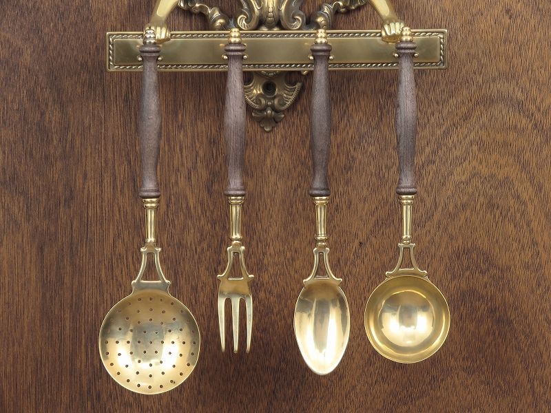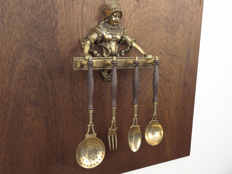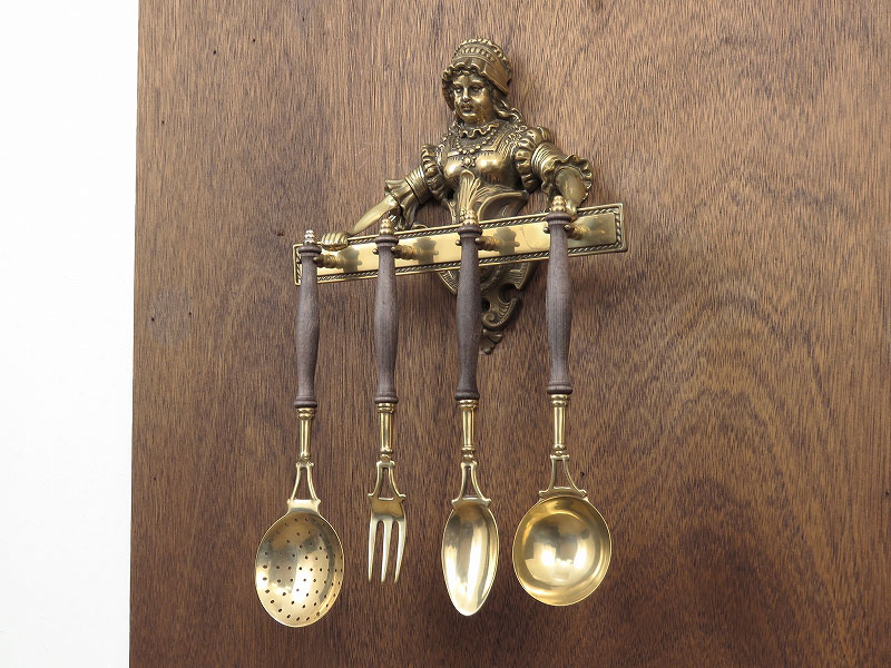 アンティーク調の真鍮製壁掛けカトラリーセット
