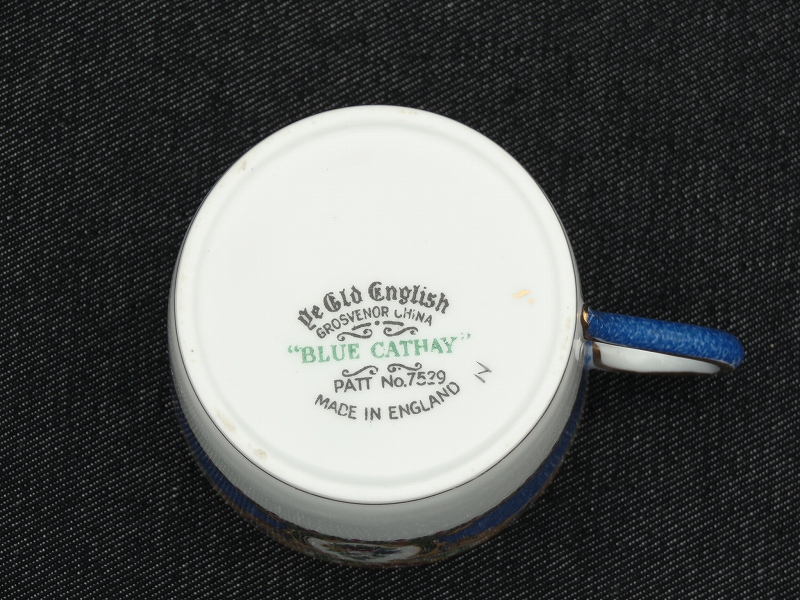 イギリスで買い付けた「オールドイングリッシュ グロブナー チャイナ Ye Olde English Grosvenor China」の デミタスカップ & ソーサー です。現地で家具を買い付けた時にショーケースに飾られていたものです。