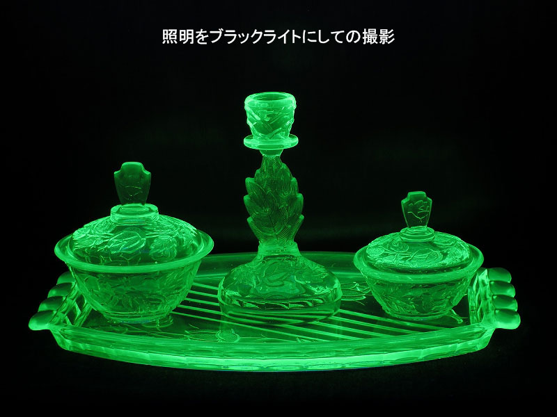 | 品 名 | ウランガラスの小物セット (ヴァセリンガラス) |