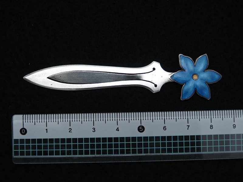 フランスで買い付けた青いエナメルの花がデザインされたスターリングシルバーの古いブックマーク(しおり)です。